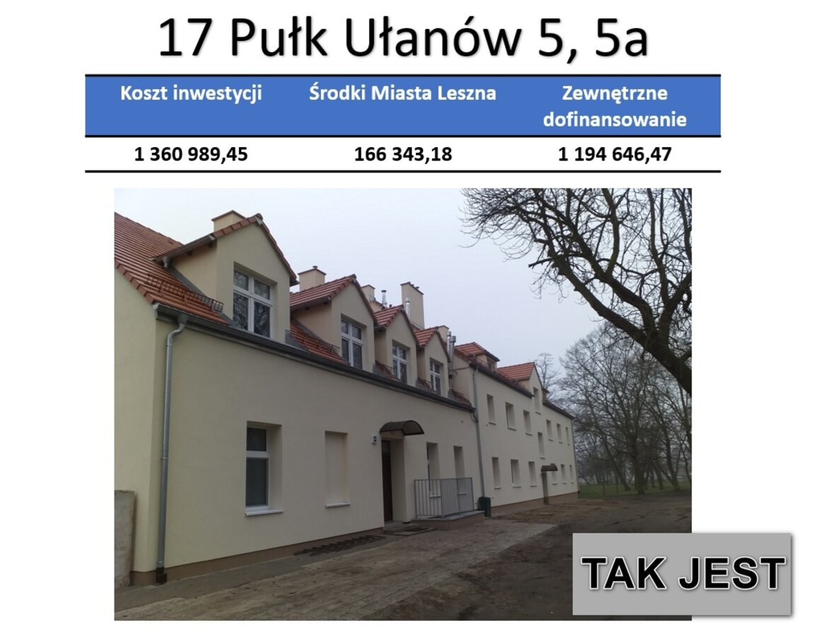 Miejski Zakład Budynków Komunalnych w Lesznie zarządza obecnie 1772 mieszkaniami, z czego 1277 stanowi pełną własność miasta, a ich łączna powierzchnia wynosi blisko 60 tys. m². Modernizacja zasobów komunalnych przyczynia się do poprawy komfortu życia mieszkańców, bezpieczeństwa technicznego budynków oraz standardów energetycznych.