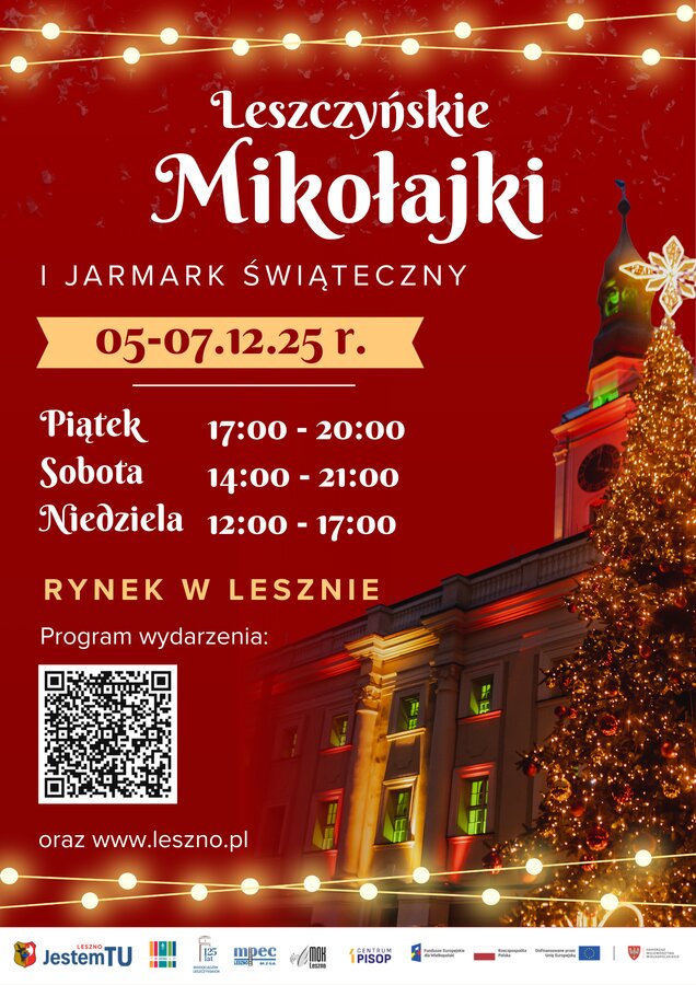 W sobotę o 15:00 w centrum Leszna wyruszy barwny korowód, który doprowadzi uczestników prosto w centrum wydarzeń. Tego dnia nie zabraknie spotkań z Mikołajem, warsztatów, animacji dla najmłodszych i licznych występów na scenie. Mieszkańców porwą świąteczne animacje taneczne przygotowane z energią i pasją przez Kolektyw Dance&Grow. Wieczorem publiczność będzie mogła wysłuchać m.in. koncertu Aleksandry Zabłockiej i Przemka Maćkowiaka, a następnie obejrzeć widowiskowy Zjazd Mikołajów z ratusza. Zwieńczeniem soboty będzie spektakl „Grudniowo na Ludowo” w wykonaniu Teatru Kulturka oraz artystyczny pokaz grupy MCP „Alternatywa”, który wprowadzi wszystkich w magiczny, świąteczny nastrój.