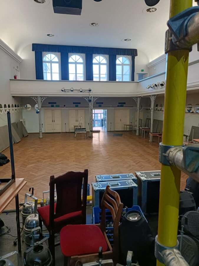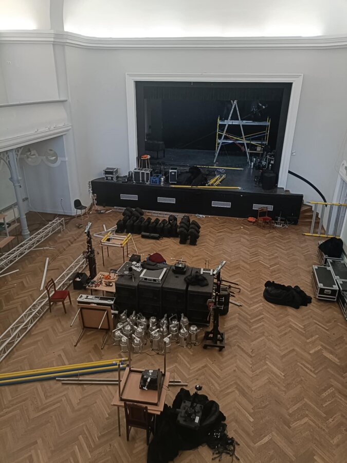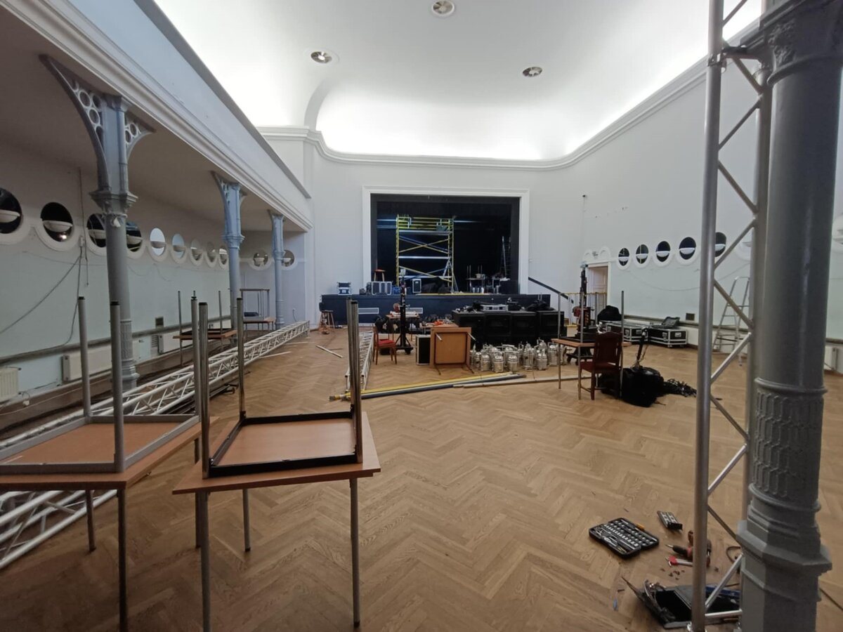 Aby skutecznie zdemontować wszystkie elementy, konieczne było przygotowanie rusztowań. Demontaż sceny to nie tylko zdejmowanie oświetlenia wiszącego nad sceną, ale również nagłośnienia oraz ekranów akustycznych. Niezbędne jest także spakowanie i przewiezienie wszystkich krzeseł, których w MOK są setki.