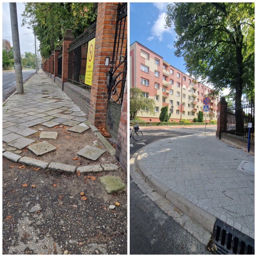 wymianę chodnika po stronie południowej (przy Jednostce Wojskowej),