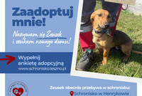 Zeusek to około 3-letni, pełen uroku psiak o pogodnym i żywiołowym charakterze. To prawdziwy miłośnik ludzi - kontakt z człowiekiem jest dla niego najważniejszy. Sam chętnie wskakuje na kolana, wtula się całym sobą i szuka bliskości. Uwielbia czułość -kładzie się na plecach i domaga się drapania po brzuszku. To pies, który wnosi do życia mnóstwo radości, energii i ciepła. Idealny towarzysz dla kogoś, kto szuka oddanego przyjaciela do przytulania i wspólnego spędzania czasu.