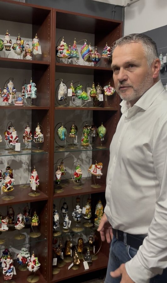 Pochodzę z Dolnego Śląska. Mieszkam w Lesznie od 25 lat. Od ponad 30 lat zajmuję się produkcją bombek choinkowych. Zaczynałem pracę w „zagłębiu bombkarskim” w Złotoryi, później pracowałem w tej samej branży w Częstochowie, aż w końcu trafiłem do Leszna i rozpocząłem pracę w firmie bombkarskiej w Dąbczu, która po kilku latacz zakończyła działalność. W tym samym okresie ten sam los spotkał kilka podobnych firm w regionie. Tutaj poznałem nowy rodzaj dekoracji bombek związany z formami – czyli bombki w kształcie postaci czy zwierzątek. To był całkiem inny rodzaj produkcji, inny poziom, z którą wcześniej się nie spotkałem. To spowodowało, że zdecydowałem się na otwarcie własnej firmy, skorzystałem z umiejętności, doświadczenia i kwalifikacji osób, które pracowały w zlikwidowanych firmach. Produkcji takich bombek formowych nie mógłbym zrealizować nigdzie indziej, mogłem to zrobić wyłącznie w Lesznie.