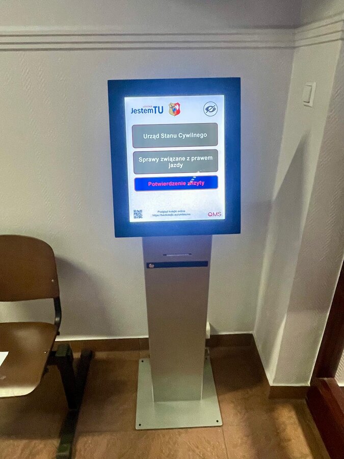 Przy wejściach do Wydziałów: Komunikacji, Spraw Obywatelskich i Urzędu Stanu Cywilnego znajdują się automaty umożliwiające szybkie pobranie numerka do odpowiedniej sprawy. Po wybraniu na ekranie rodzaju usługi, urządzenie drukuje bilet z numerem, który następnie wywoływany jest na monitorach w kolejności obsługi. Dzięki temu Mieszkańcy sprawnie trafiają do właściwej kolejki i unikają oczekiwania w nieodpowiednim miejscu.