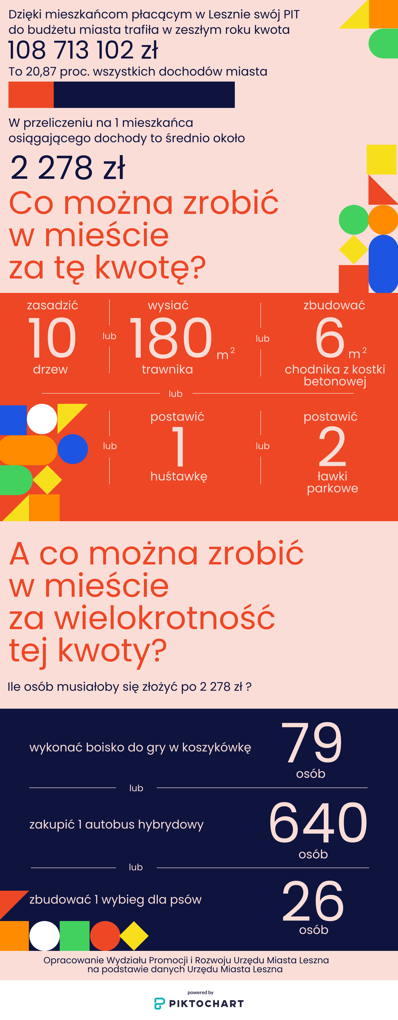 To tylko kilka przykładów. Codziennie po leszczyńskich chodnikach spacerują setki pieszych, ścieżkami rowerowymi przejeżdżają dziesiątki rowerzystów, a na placach zabaw bawi się mnóstwo dzieci. Każdy mieszkaniec, który w swoim rocznym zeznaniu podatkowym wskazuje Leszno jako miejsce zamieszkania dokłada się do tego, aby miejsca, które są blisko i, z których korzysta na co dzień mogły zmieniać się na lepsze.