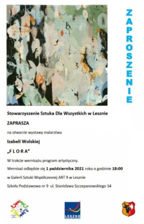 - godz. 18.00, Galeria Sztuki Współczesnej ART 9 w Lesznie, Wernisaż wystawy malarstwa Izabeli Wolskiej pt. "FLORA"; więcej szczegółów: https://leszno.pl/Wernisaz_Izabeli_Wolskiej_pt__FLORA.html