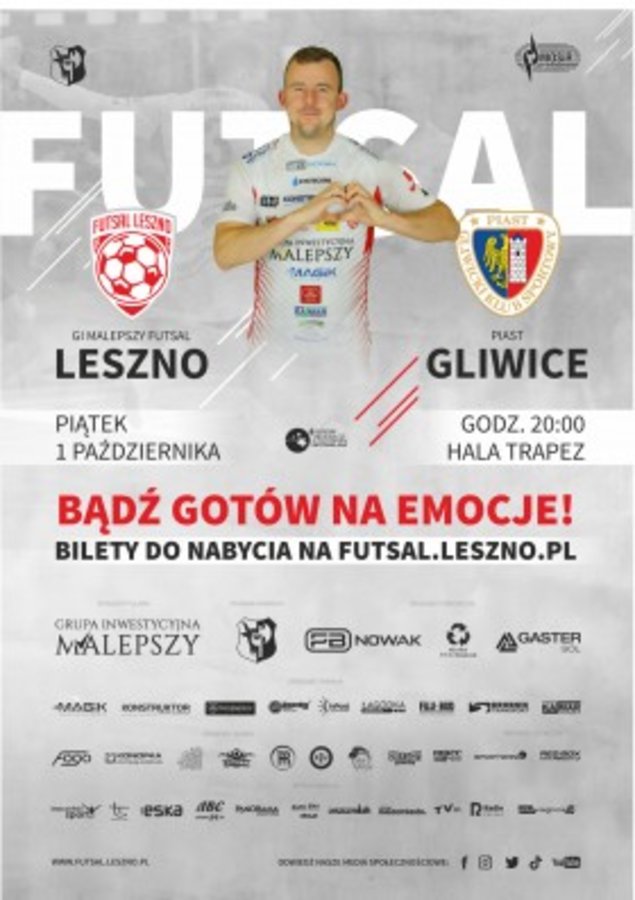 - godz. 20.00, Hala Trapez, GI Malepszy Futsal Leszno - Piast Gliwice; więcej szczegółów: https://leszno.pl/GI_Malepszy_Futsal_Leszno_-_Piast_Gliwice.html