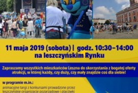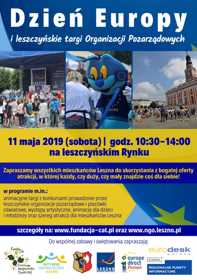 - godz. 11.00, Rynek, Dzień Europy i leszczyńskie Targi Organizacji Pozarządowych; szczegóły: https://leszno.pl/Dzien_Europy_i_leszczynskie_Targi_Organizacji_Pozarzadowych_948d7.html