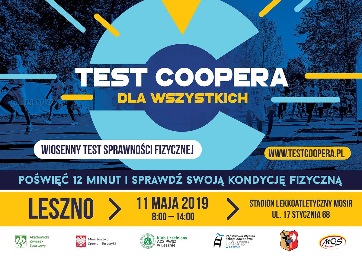 - godz.08.00, Stadion lekkoatletyczny, Test Coopera; szczegóły: https://leszno.pl/Test_Coopera_6e3.html