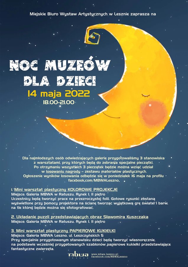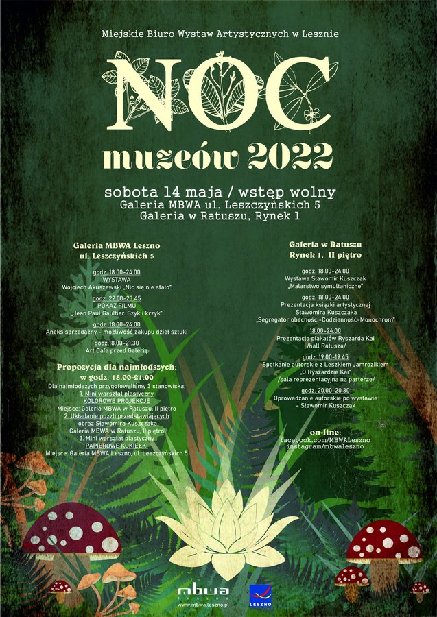 godz. 18.00, Noc Muzeów, Galeria MBWA Leszno, ul. Leszczyńskich 5, Galeria w Ratuszu - Rynek 1; więcej informacji znajdziesz na: https://leszno.pl/NOC_MUZEOW_32257.html