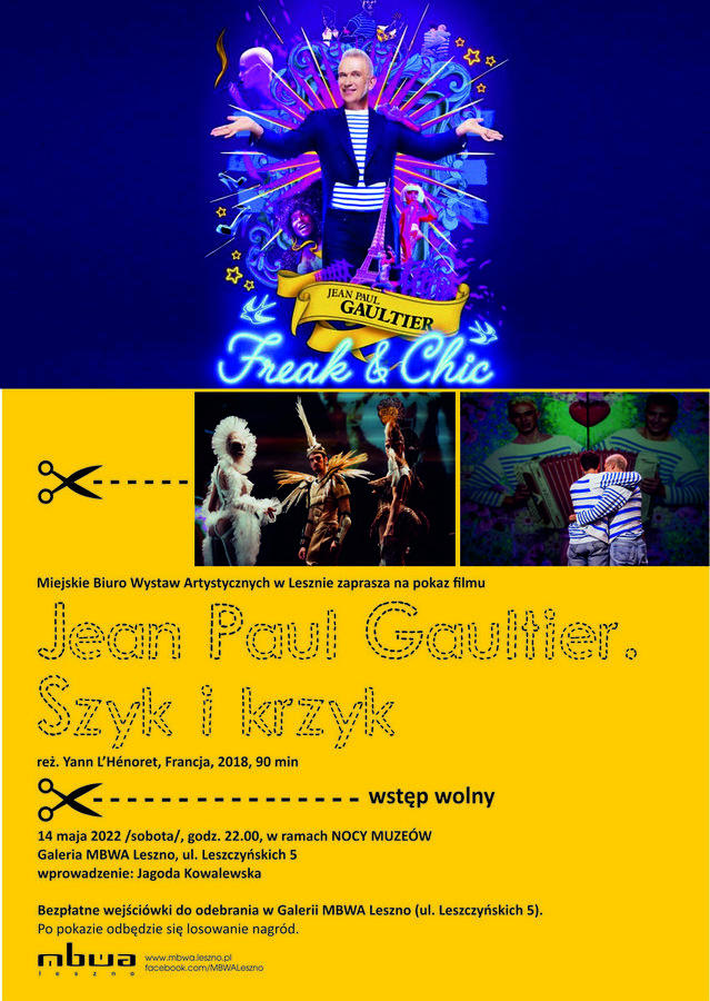 godz. 22.00, Jean Paul Gaultier. Szyk i krzyk - pokaz filmowy w MBWA, ul. Leszczyńskich 5; więcej informacji znajdziesz na: https://leszno.pl/Jean_Paul_Gaultier__Szyk_i_krzyk_-_pokaz_filmowy_w_MBWA_5e12b.html