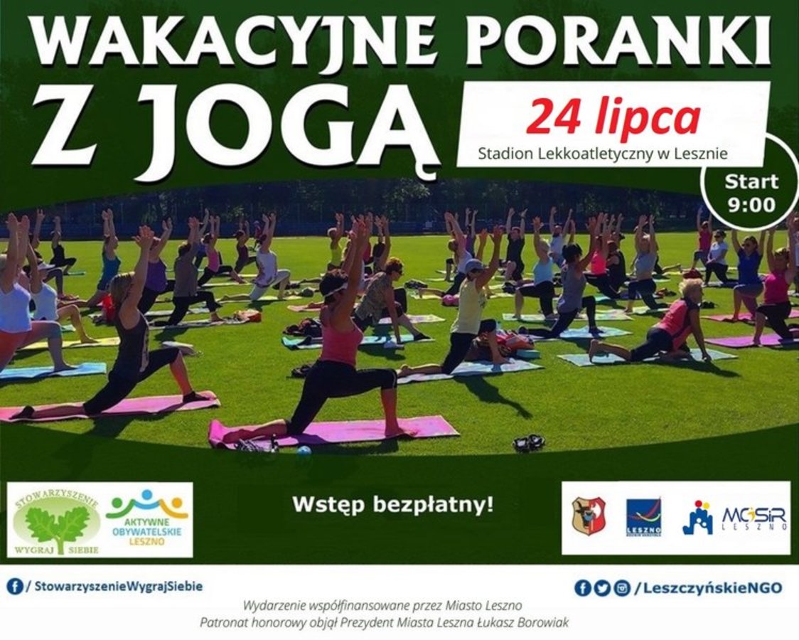 - godz. 09.00, Stadion Lekkoatletyczny, Wakacyjne Poranki z Jogą; więcej informacji znajdziesz na: https://leszno.pl/Wakacyjne_Poranki_z_Joga_d1a.html