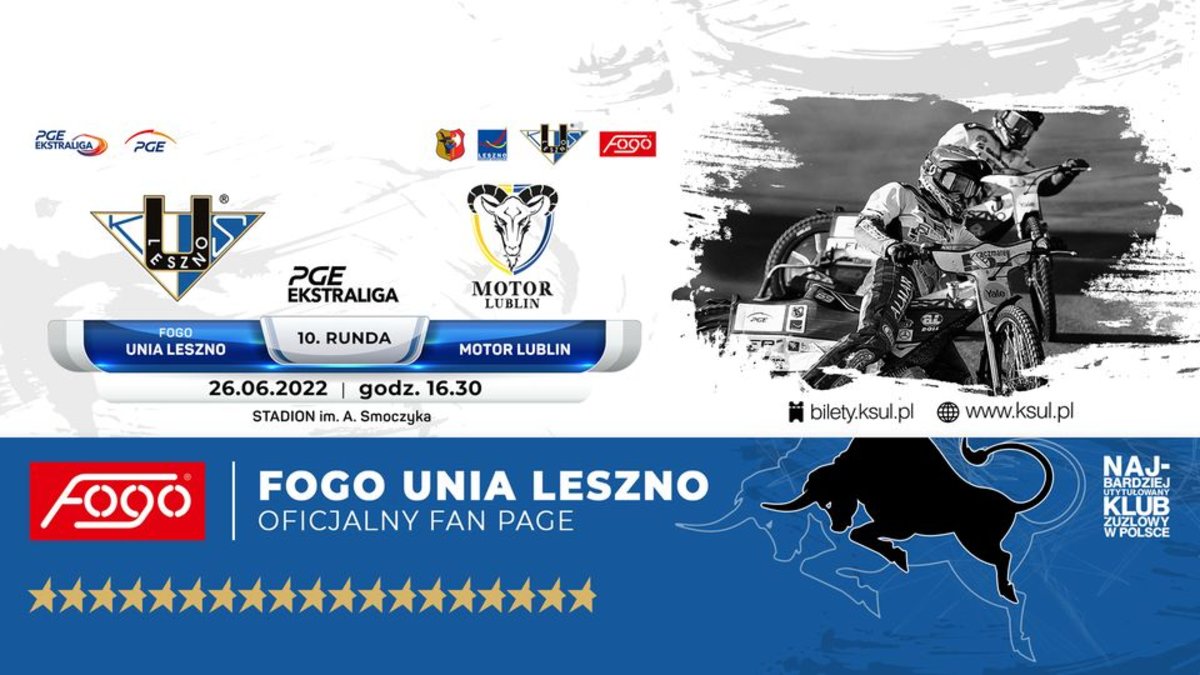 - godz. 16:30, Stadion im. Alfreda Smoczyka, Fogo Unia Leszno - Motor Lublin; więcej informacji znajdziesz na: https://leszno.pl/Fogo_Unia_Leszno_-_Motor_Lublin_37c.html