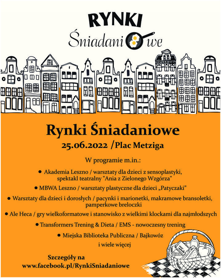 - godz. 10.00, Plac Metziga, Rynki Śniadaniowe, więcej informacji znajdziesz na: https://leszno.pl/Rynki_Sniadaniowe_394.html