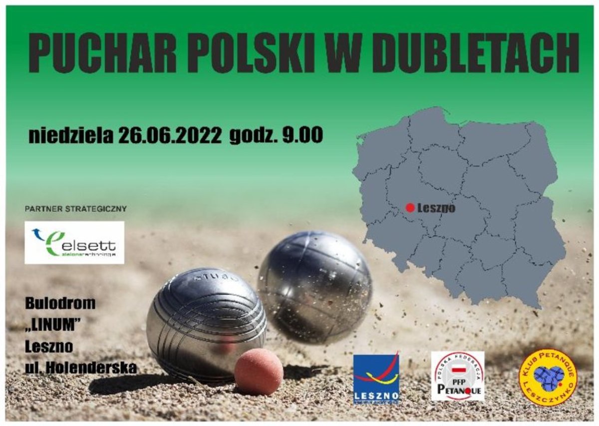 - godz. 9.00, bulodrom ,,Linum" ul. Holenderska, Puchar Polski w Petanque; więcej informacji znajdziesz na: https://leszno.pl/Puchar_Polski_w_Petanque_e960f.html