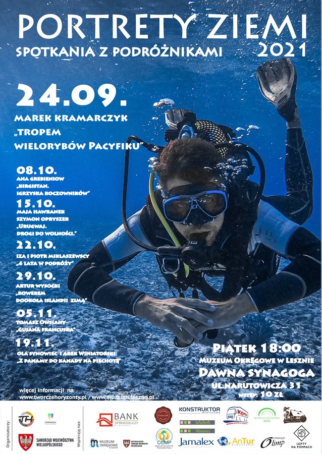 - godz. 18.00, Muzeum Okręgowe w Lesznie / dawna synagoga / ul. G. Narutowicza 31, Portrety Ziemi, TROPEM WIELORYBÓW PACYFIKU Marek Kramarczyk 10 zł, więcej szczegółów: https://leszno.pl/Portrety_Ziemi_-_Spotkania_z__podroznikami_.html