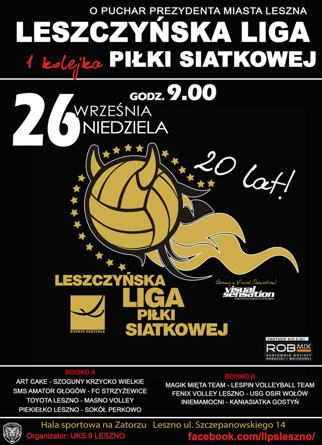 - godz. 9.00, Hala Sportowa SP9 na Zatorzu, ul. Szczepańskiego 14, 1. kolejka XX Rozgrywek Leszczyńskiej Ligi Piłki Siatkowej o Puchar Prezydenta Miasta Leszna; więcej szczegółów: https://leszno.pl/1__kolejka_XX_Rozgrywek_Leszczynskiej_Ligi_Pilki_Siatkowej_o_Puchar_Prezydenta_Miasta_Leszna_12602.html