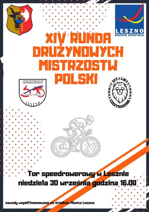 - godz. 16:00, Tor Speedrowerowy, XIV runda Drużynowych Mistrzostw Polski w speedrowerze; szczegóły: https://leszno.pl/XIV_runda_Druzynowych_Mistrzostw_Polski_w_speedrowerze__58bae.html