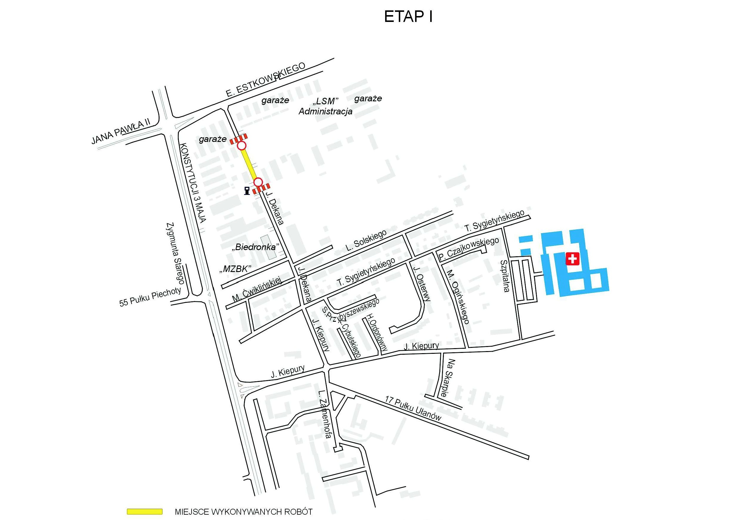 Etap III - od wjazdu do Biedronki do skrzyżowania ulic Dekana-Sygietyńskiego-Kiepury - czas realizacji 8 sierpnia-5 września,