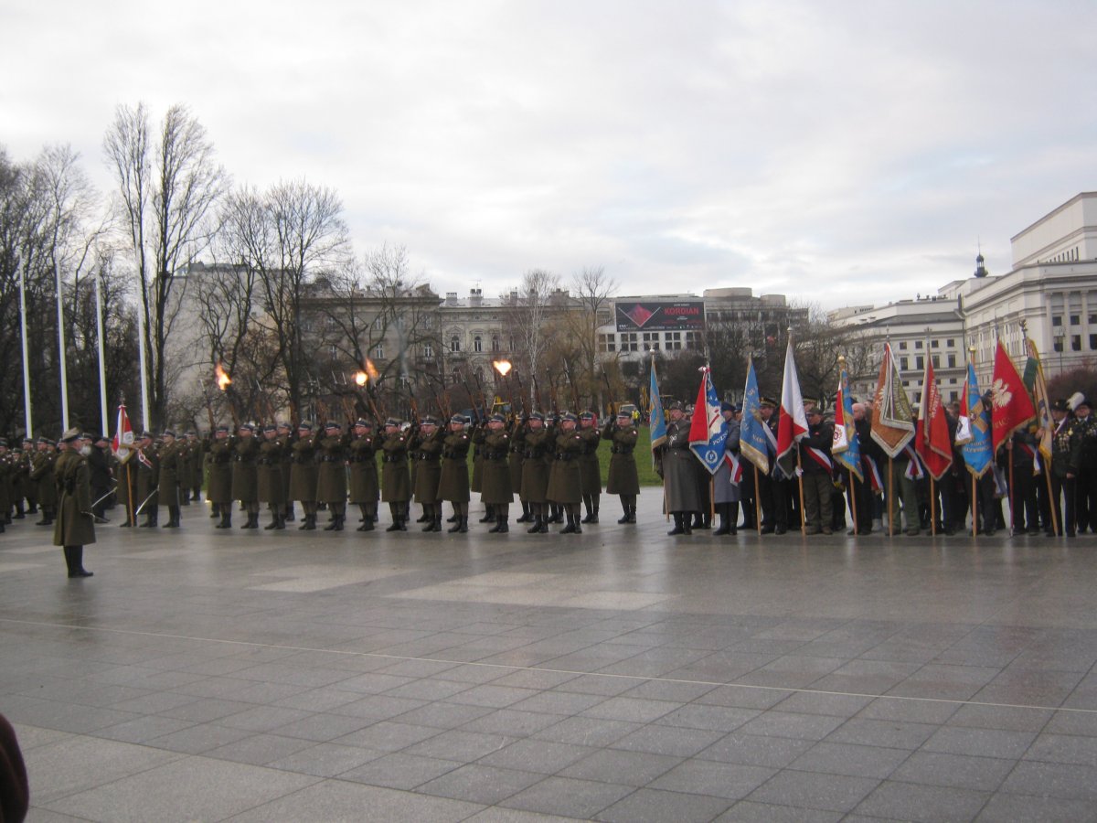 Kolejne punkty programu warszawskiej odsłony obchodów rocznicowych to zmiana posterunku przy Grobie Nieznanego Żołnierza, modlitwa w intencji Powstańców Wielkopolskich księdza Michała Janochy, biskupa pomocniczego warszawskiego, odczytanie Apelu Pamięci, salwa honorowa oraz ceremoniał składania kwiatów, które złożył m.in. Prezydent RP Andrzej Duda, a także delegacja Miasta Leszna (zaszczytem dla Miasta było to, że delegacja Miasta składała kwiaty bezpośrednio po delegacji Miasta Poznania, a przed innymi delegacjami z innych miejscowości i organizacji). Uroczystości zakończyła defilada pododdziałów wojskowych, harcerzy i pocztów sztandarowych.