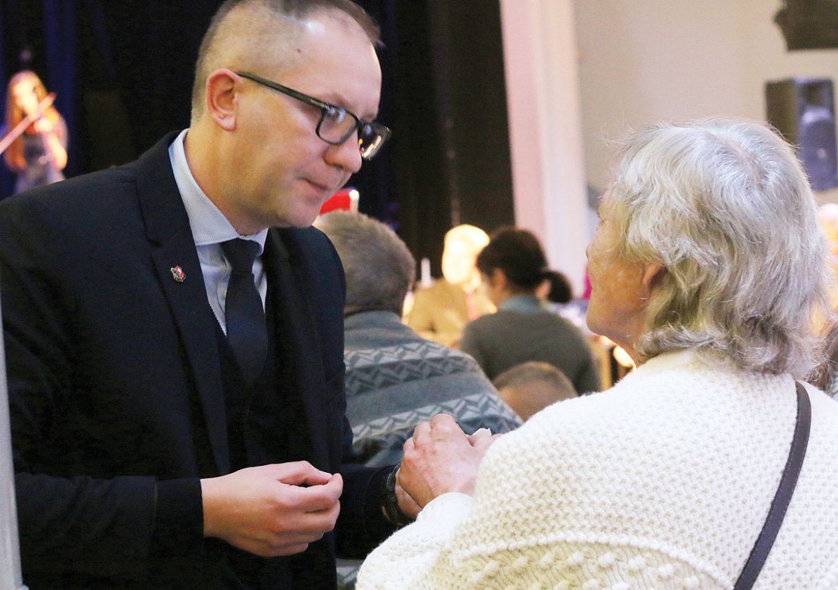 Przed przełamaniem się opłatkiem ciepłe słowa do wszystkich uczestników Wieczerzy Wigilijnej skierowali ksiądz dziekan Jan Majchrzak i prezydent Leszna Łukasz Borowiak.