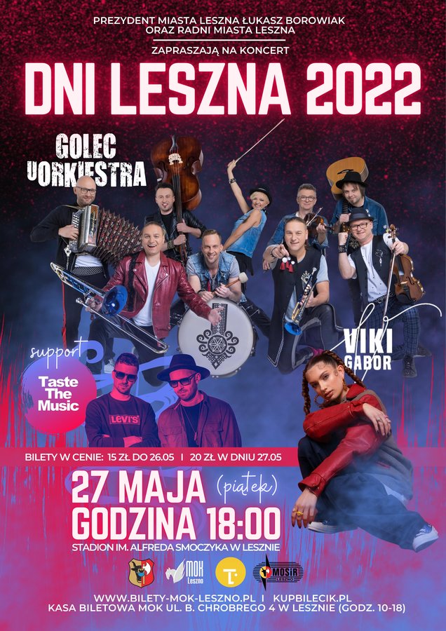 27 maja zagrają: wokalistka młodego pokolenia - Viki Gabor oraz zespół Golec uOrkiestra. Miał on wystąpić podczas Dni Leszna dwa lata temu. Wówczas organizatorom szyki pokrzyżowała pandemia. Koncerty gwiazd poprzedzi występ doskonale znanego nie tylko w Lesznie - Taste The Music.