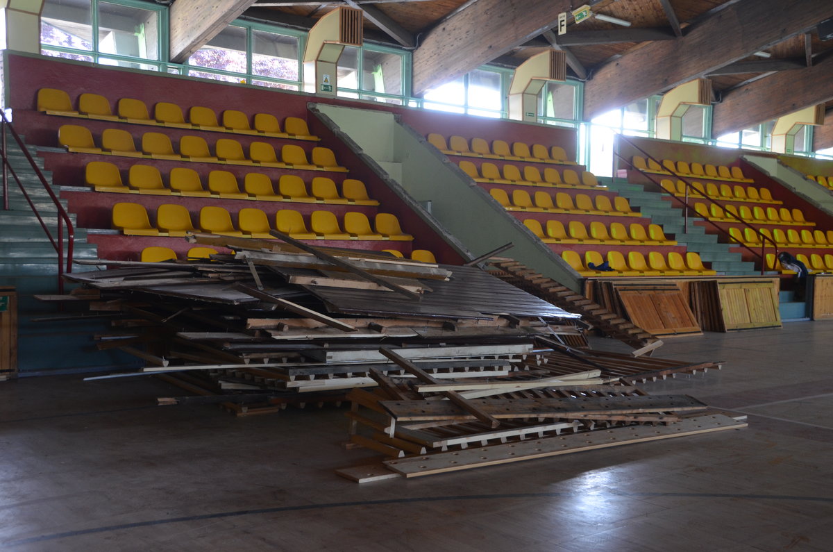 Termomodernizacja to m.in.: wymiana dachu, okien, drzwi instalacji wentylacyjnej i klimatyzacji. Remont generalny w środku to: przebudowa zaplecza administracyjno-socjalnego, toalet, nowy system monitoringu, budowa od podstaw parkietu łącznie z legarami, czyli całą konstrukcją znajdującą się pod podłogą.