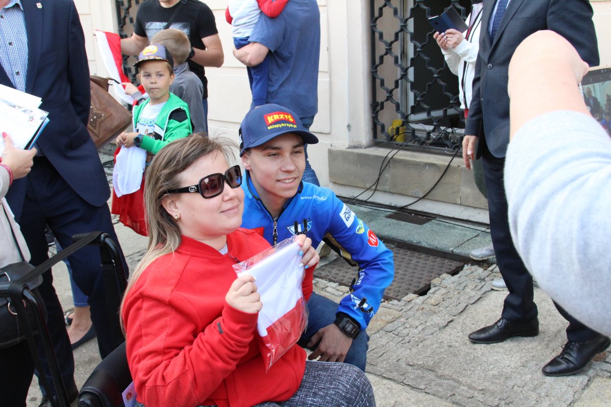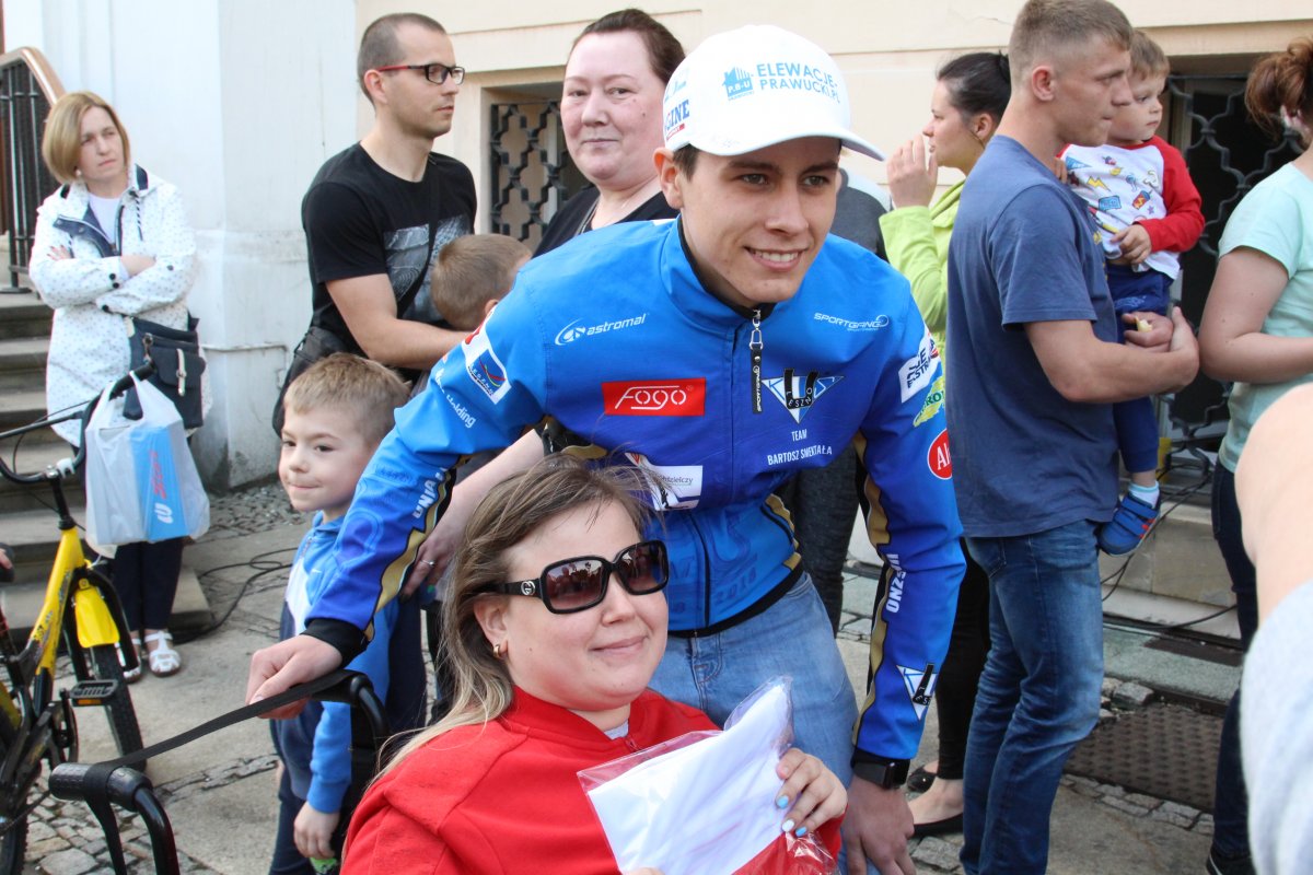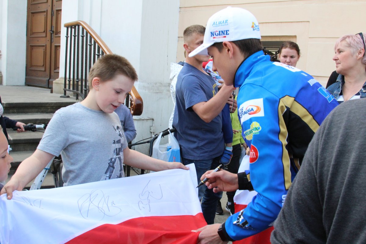 Następnie prezydent Łukasz Borowiak i jego zastępcy Adam Mytych i Piotr Jóźwiak wraz z żużlowcami Unii Leszno Piotrem Pawlickim, Bartoszem Smektałą i Dominikiem Kuberą rozdali mieszkańcom biało-czerwone flagi. Przygotowano ich ponad 200 szt., ale rozeszły się błyskawicznie.
