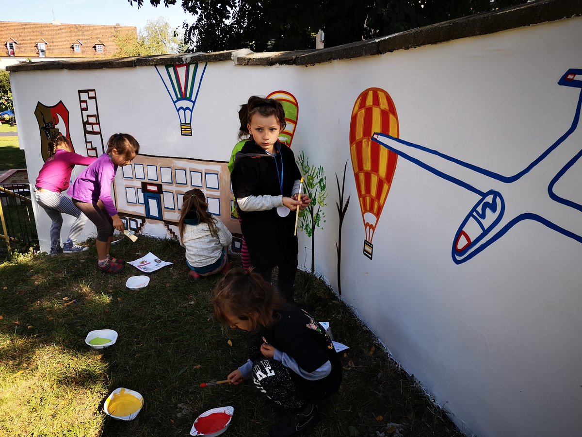 - stworzono mural na górce na placu (projekt muralu wykonała Agnieszka Olejniczak - studentka malarstwa na Uniwersytecie Artystycznym w Poznaniu, wypełnianie w konturach grupa dz. 6-letnich- Kubusie) przedstawiający m.in. herb Leszna, logo 100-lecia, obiekty – ratusz, balony, szybowiec, żużlowiec, budynek naszego przedszkola,