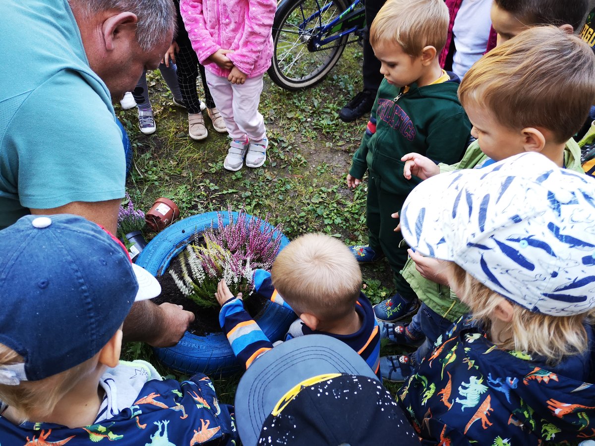 - Dzieci sadziły żółte, czerwone oraz czarne tulipany, które wiosną utworzą po zakwitnięciu utworzą flagę Leszna oraz dzięki wspaniałemu zaangażowaniu Rodziców przyozdabiane były w jesienne kwiaty (m.in.wrzosy, dąbki, chryzantemy) przedszkolne skwery i skalniak.