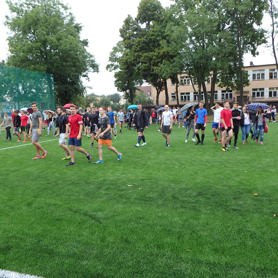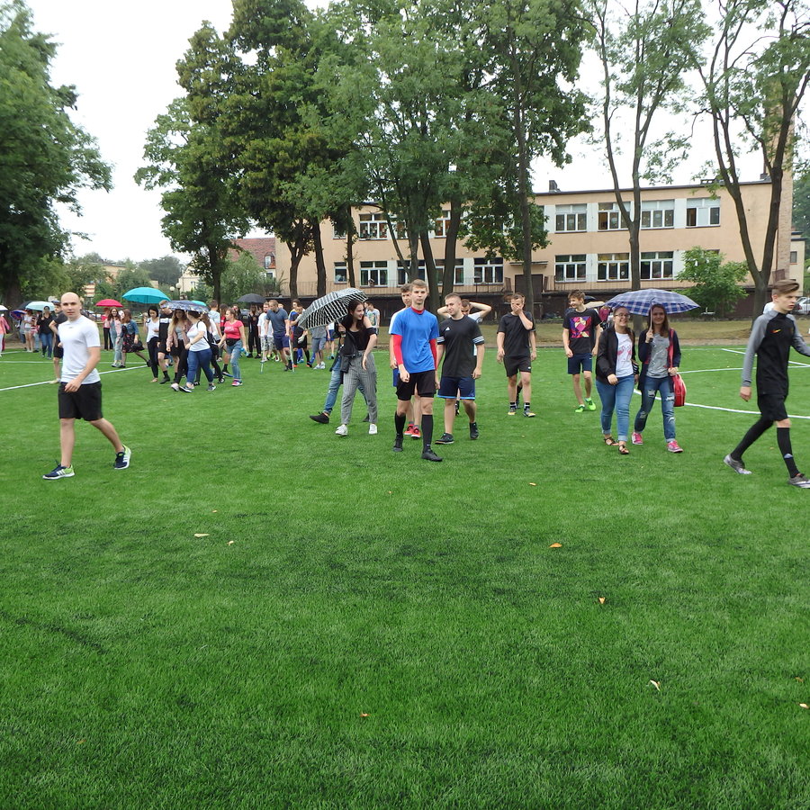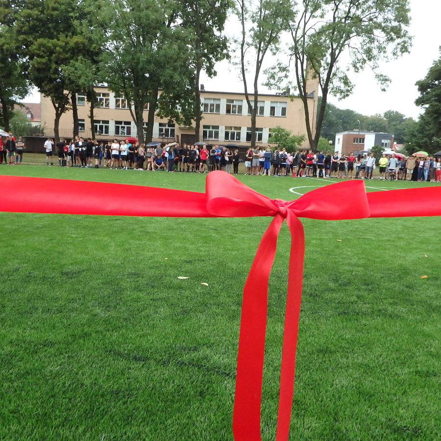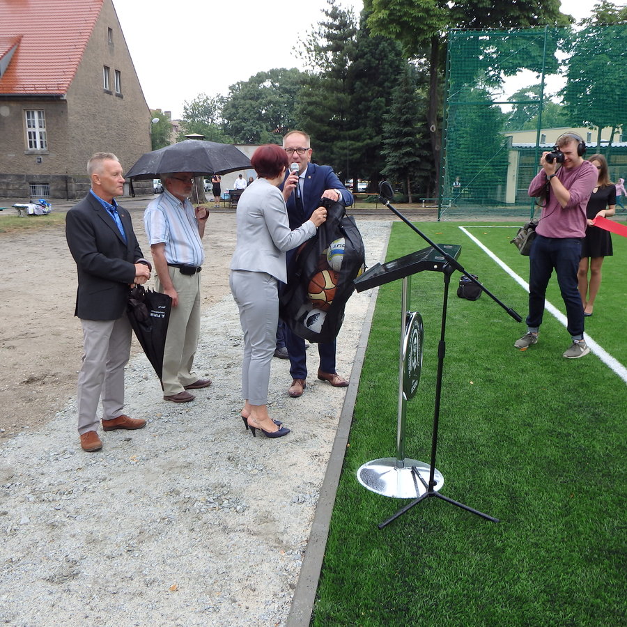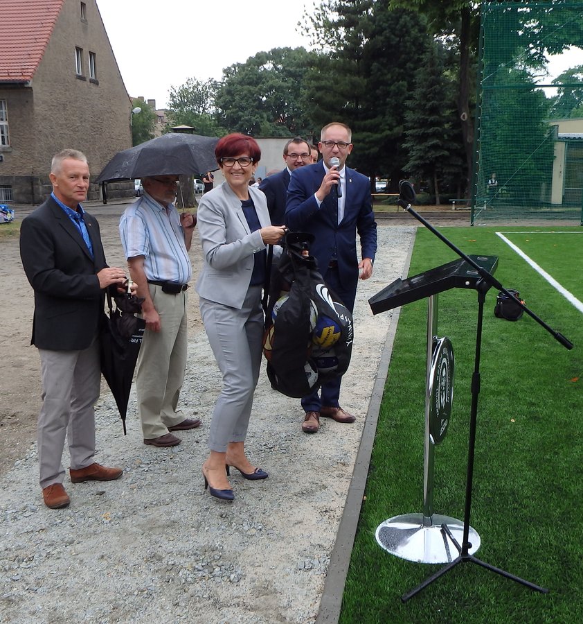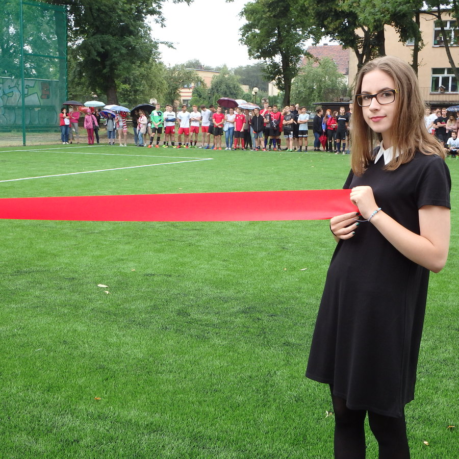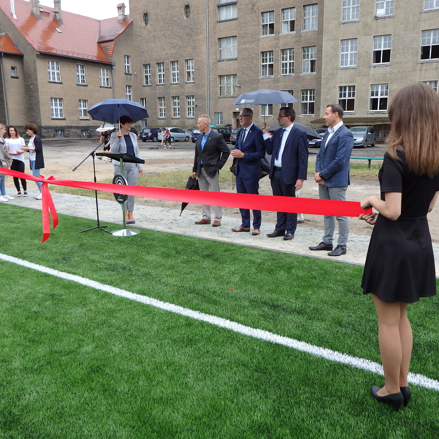 Symbolicznego przecięcia wstęgi dokonali przedstawiciele władz miasta oraz dyrektor szkoły, Irena Szynkarek. Prezydent Łukasz Borowiak przekazał na jej ręce worek piłek dla młodzieży. Gratulował też młodzieży, że w ubiegłym roku zmobilizowała tak duże grono osób, które oddały w Budżecie Obywatelskim głos właśnie na budowę tego boiska.