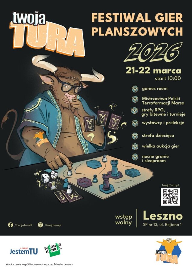 Już 21 i 22 marca 2026 roku zapraszamy Was na drugą edycję Festiwalu Gier Planszowych „TWOJA TURA” w Lesznie.