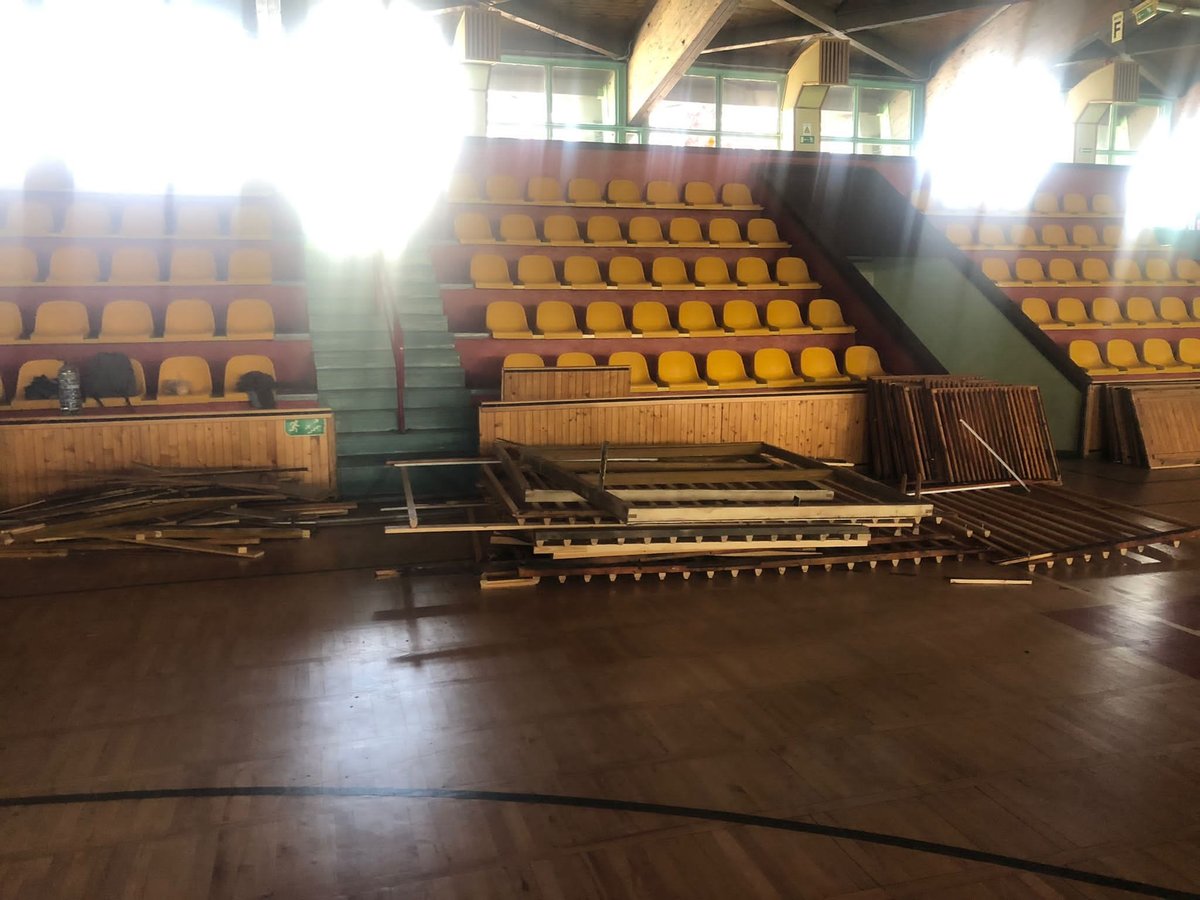Termomodernizacja to m.in.: wymiana dachu, okien, drzwi, instalacji wentylacyjnej i klimatyzacji. Remont generalny w środku to: przebudowa zaplecza administracyjno - socjalnego, toalet, nowy system monitoringu, budowa od podstaw parkietu łącznie z legarami, czyli całą konstrukcją znajdującą się pod podłogą.