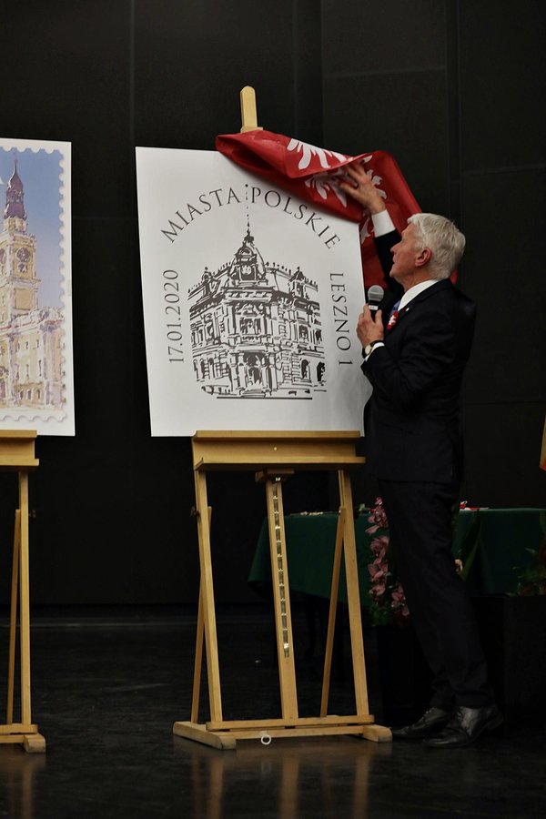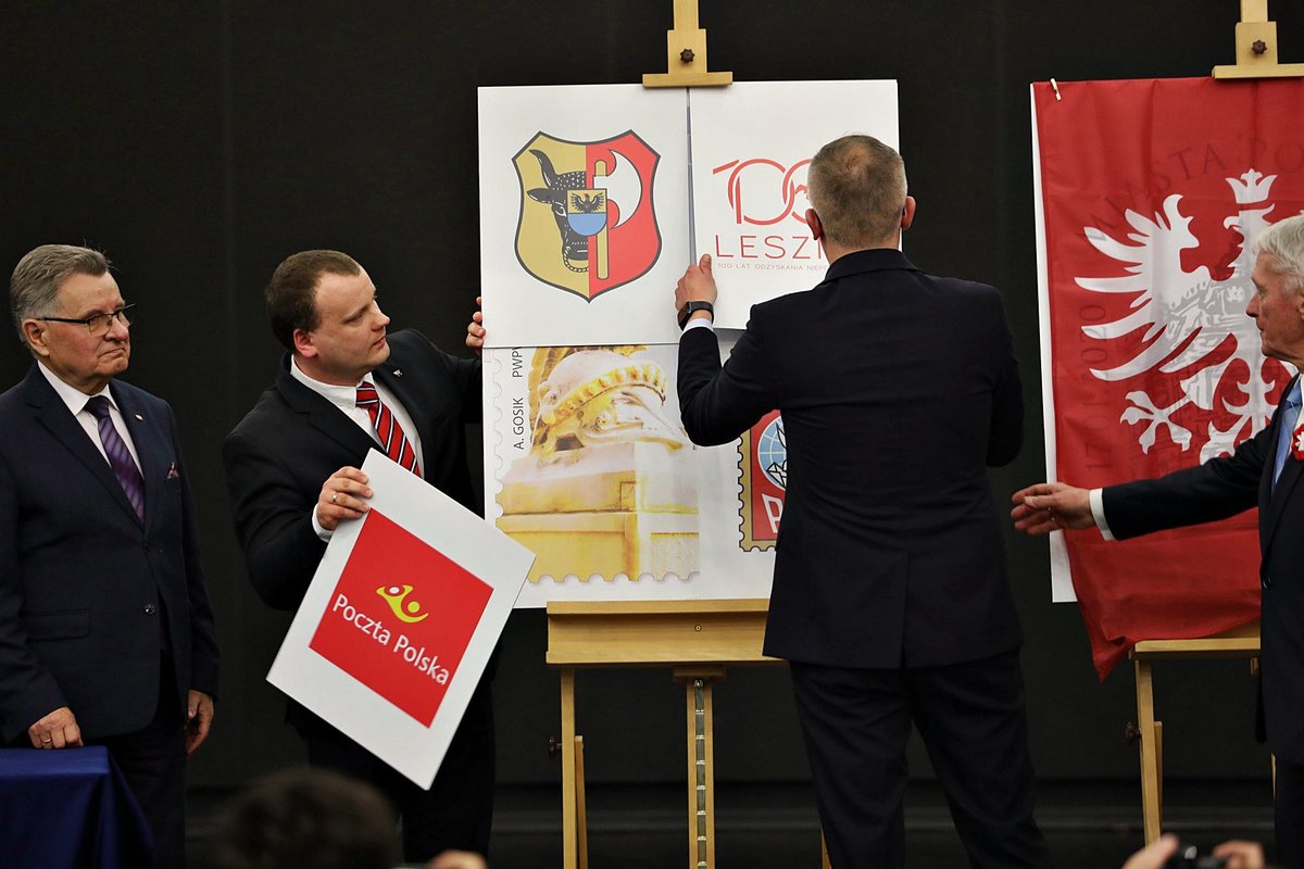 Następnie na scenę zaproszono Lecha Woźnego, Prezesa Polskiego Związku Filatelistów Koło Leszno, który wraz z członkiem Rady Nadzorczej Poczty Polskiej S.A., panem Leszkiem Gawareckim, zaprezentowali znaczek pocztowy z wizerunkiem Leszna. Z okazji 100-lecia powrotu Leszna do macierzy został on wydany w ilości 30 mln egzemplarzy w cyklu miast polskich i jest dostępny we wszystkich placówkach Poczty Polskiej na terenie całego kraju.