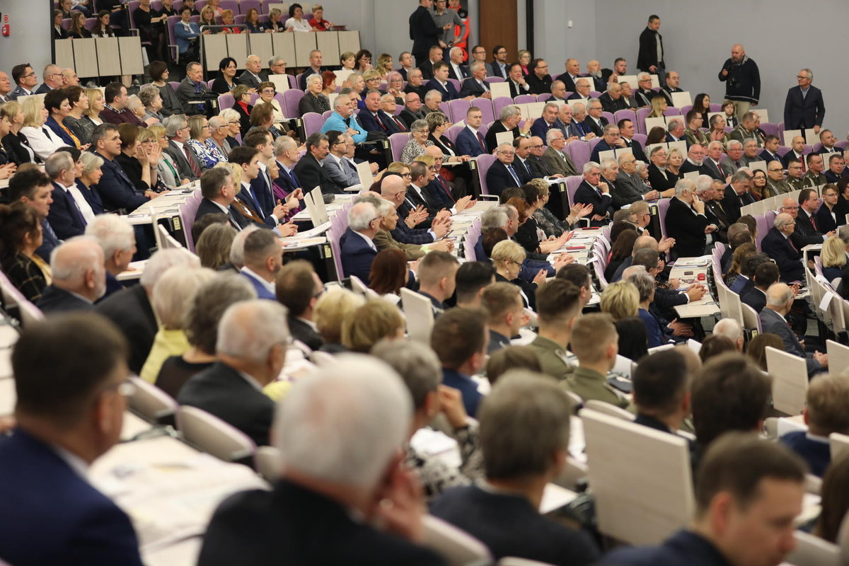 Kolejnym punktem uroczystej sesji były wystąpienia najbardziej znamienitych z obecnych gości. Wśród nich z wielką radością i dumą powitaliśmy pana Andrzeja Derę, sekretarza stanu w Kancelarii Prezydenta RP, który odczytał list od Prezydenta Andrzeja Dudy, a także przekazał na ręce Prezydenta Łukasza Borowiaka symboliczny dar – biało-czerwoną flagę. Kolejną osobą, która zabrała głos był pan Jan Dziedziczak, Sekretarz Stanu w Kancelarii Prezesa Rady Ministrów i pełnomocnik rządu ds. Polonii i Polaków za granicą. Zarówno on, jak i przemawiający po nim parlamentarzyści – Posłowie na Sejm RP Jan Mosiński, Grzegorz Rusiecki i Władysław Szczepański, próbowali podsumować 100 lat polskiego Leszna i scharakteryzować miasto oraz jego mieszkańców. Jako ostatnia głos zabrała pani Ewa Panowicz, Radna Sejmiku Wielkopolskiego, która odczytała list Marszałka Województwa Wielkopolskiego na okoliczność 100. rocznicy powrotu Leszna w granice Rzeczypospolitej.