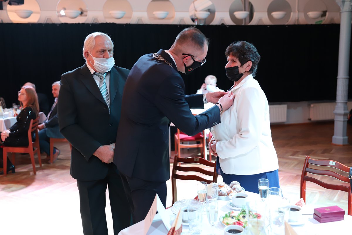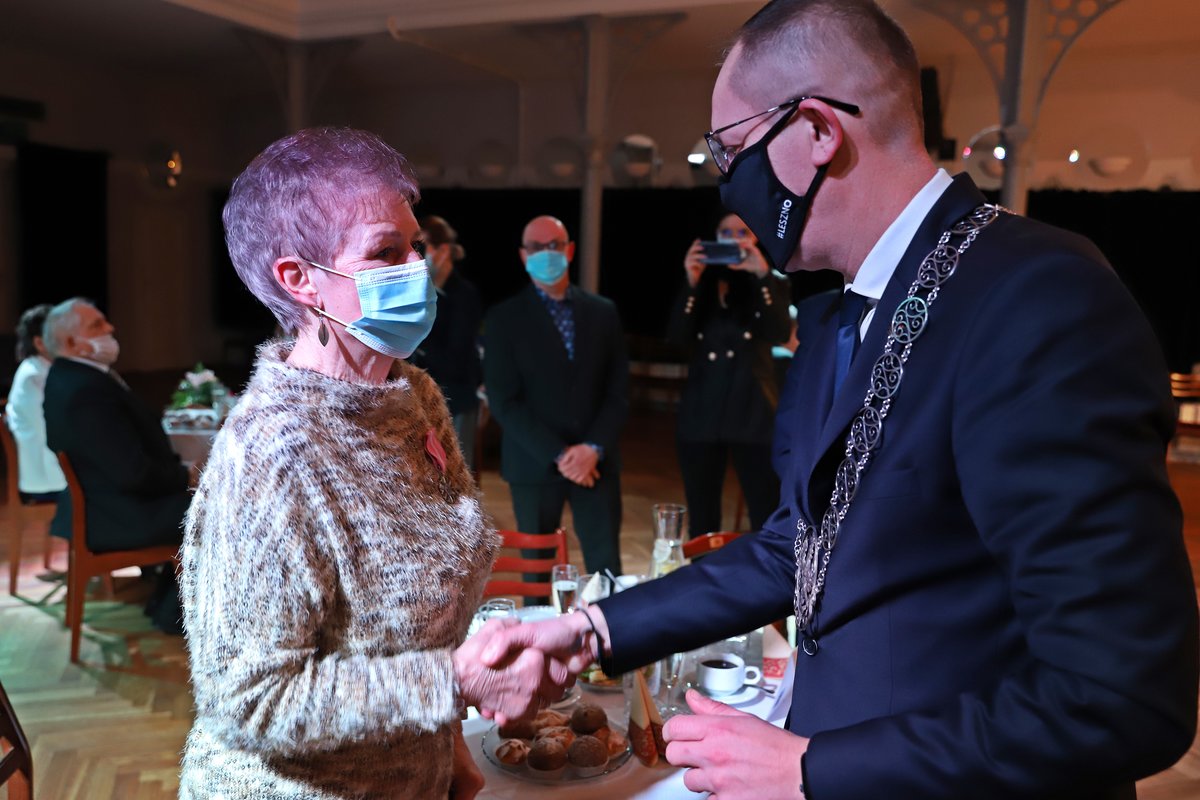 Prezydent Łukasz Borowiak, oprócz medali nadawanych przez Prezydenta RP, wręczał także kwiaty. Był też czas na krótką rozmowę i pamiątkowe zdjęcia.
