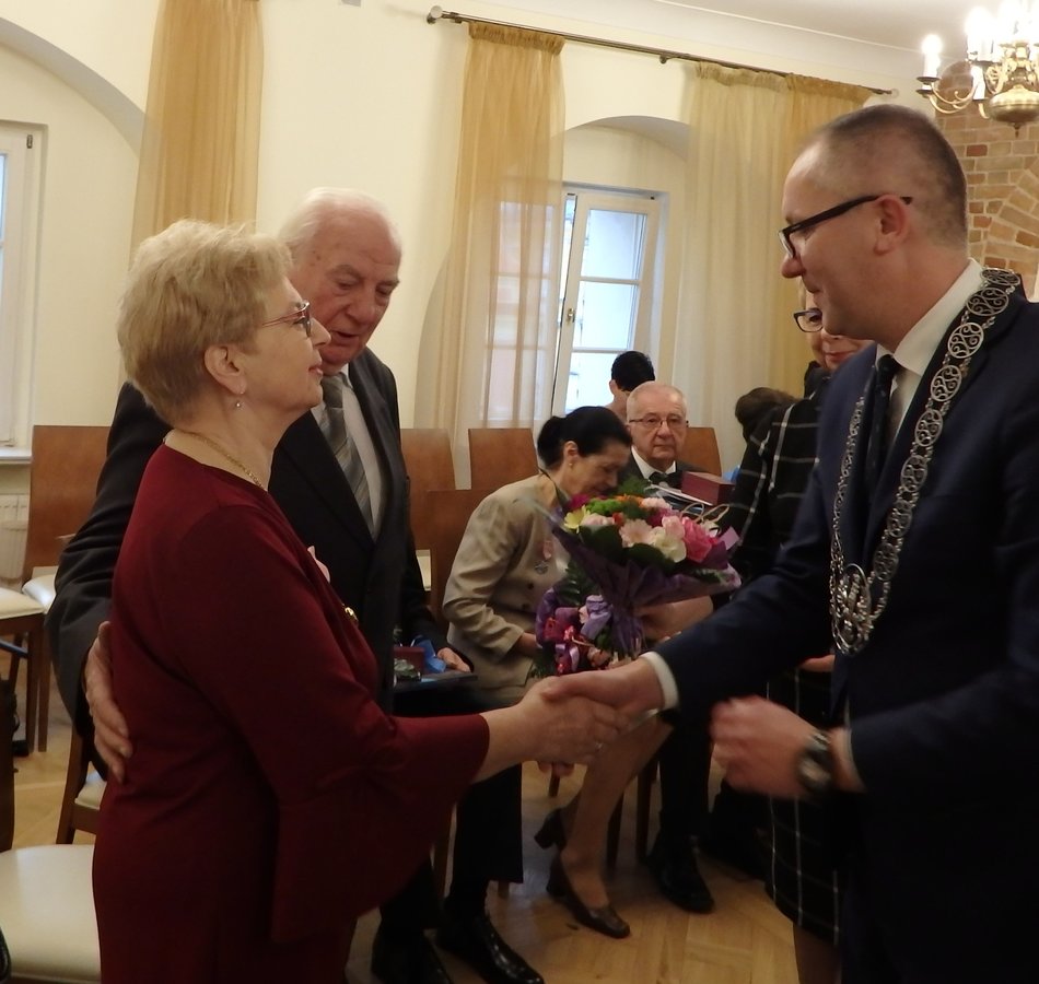 Potem prezydent oraz Anna Szymaniak, kierownik Urzędu Stany Cywilnego wręczyli małżonkom medale za długoletnie pożycie przyznane przez prezydenta Andrzeja Dudę. Otrzymali je: Zofia i Wojciech Jaskólscy, Lucyna i Edmund Kurzajowie, Janina i Stefan Janowicze, Genowefa i Lechosław Buszowie, Aleksandra i Karol Wendzonkowie, Krystyna i Marian Pytlikowie.