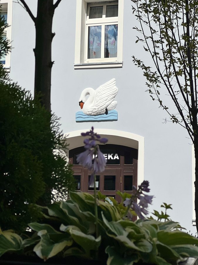 Kamienica ustuowana przy ul. Leszczyńskich 43, przy zbiegu Al. Jana Pawła II, z pewnością należy do najbardziej znanych obiektów w Lesznie, za sprawą lokalu gastronomicznego "Pod Łabędziem", jaki tu działał przez niemal cały wiek XX. Oprócz walorów historycznych obiekt posiada cechy charakterystyczne dla piętrowej zabudowy mieszczańskiej Leszna z pocz. XIX w. Ponad głównym wejściem znajduje się wykonana w głębokim reliefie sylwetka łabędziem. Budynek jest ujęty w gminnej ewidencji zabytków i znajduje się na obszarze historycznego założenia urbanistycznego miasta Leszna, wpisanego do rejestru zabytków na podstawie decyzji z dnia 20.08.1985 r. pod nr rej. 975/A.