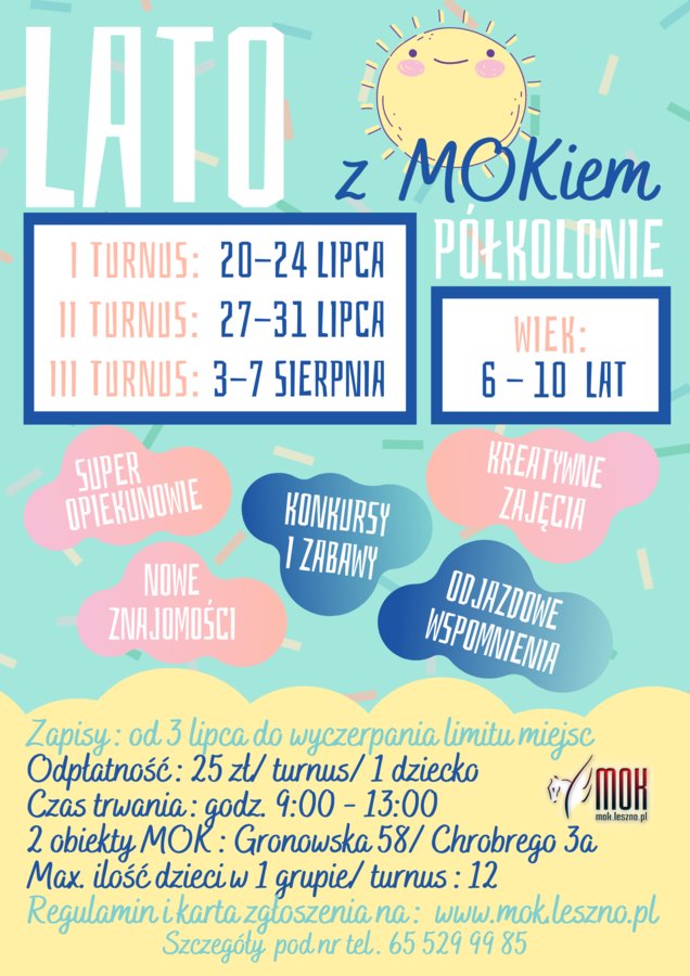 Szczegóły na www.mok.leszno.pl i pod nr tel. 65 529 99 85