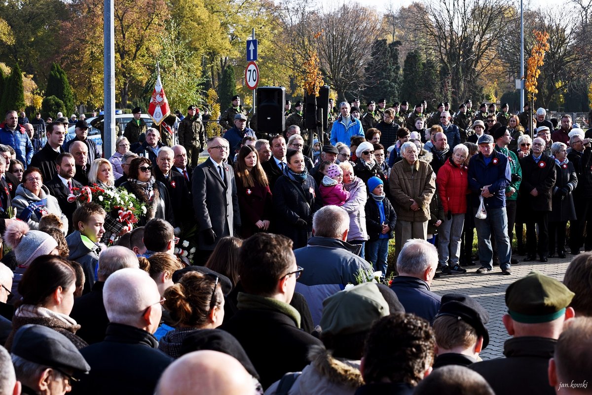 Obchody 101. rocznicy wydarzeń z 11 listopada 1918 roku rozpoczęły się w Lesznie od mszy świętej w kościele św. Antoniego przy ul. Kąkolewskiej. W nabożeństwie w intencji Ojczyzny udział wzięły: kompania honorowa Wojska Polskiego, drużyna sztandarowa harcerzy, poczty sztandarowe, delegacje oraz Orkiestra Dęta Miasta Leszna. Następnie pod pomnikiem 200-lecia Konstytucji 3 Maja i Odzyskania Niepodległości przemówił prezydent Łukasz Borowiak: