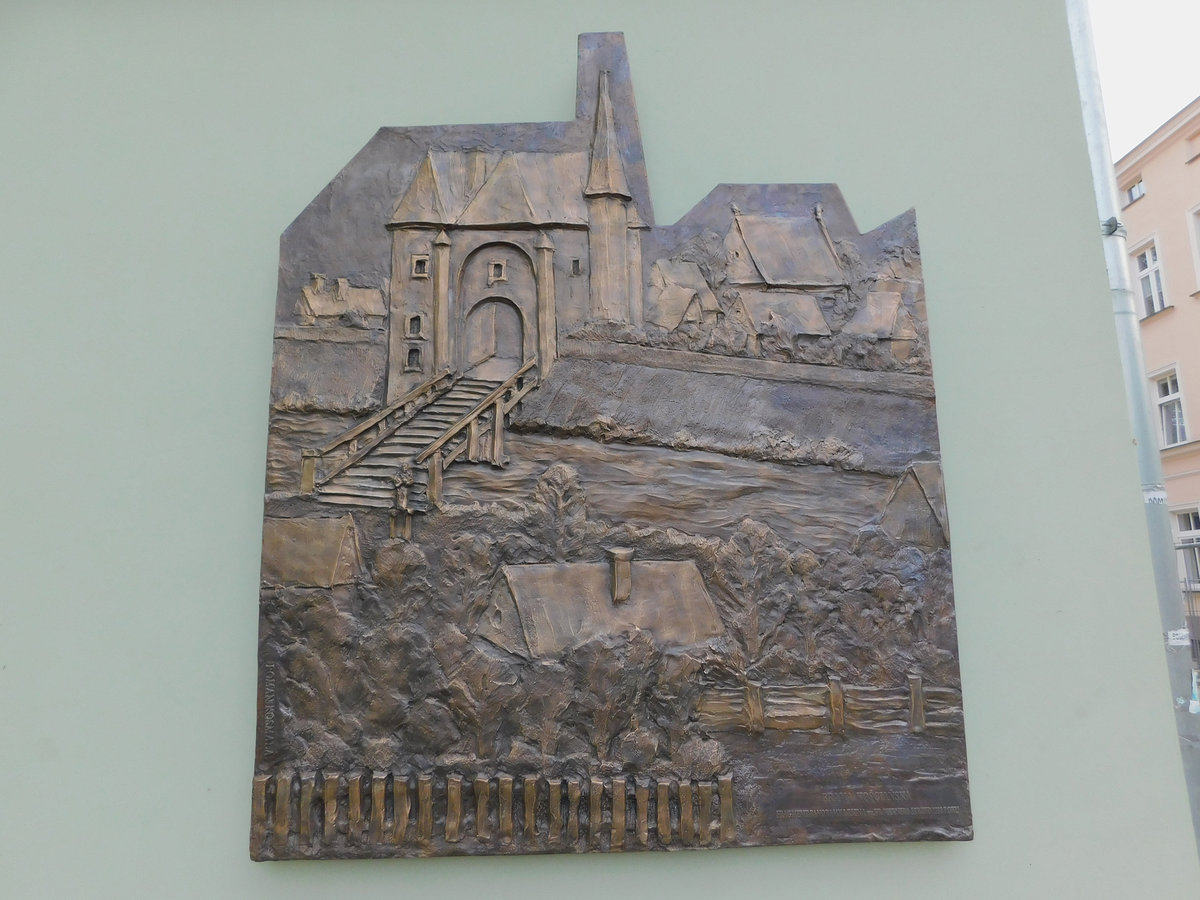 Na ścianie domu przy ul. Narutowicza powieszono płaskorzeźbę z przedstawieniem Bramy Kościańskiej w około 1740 r.