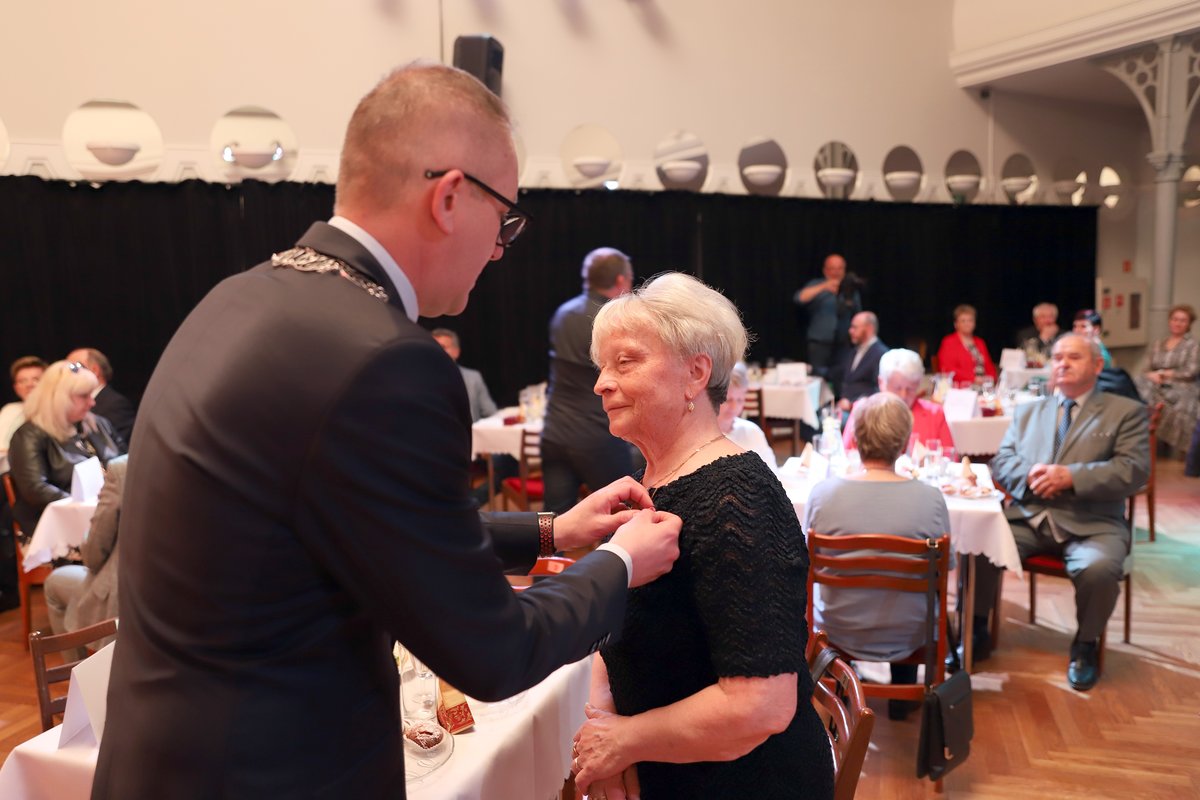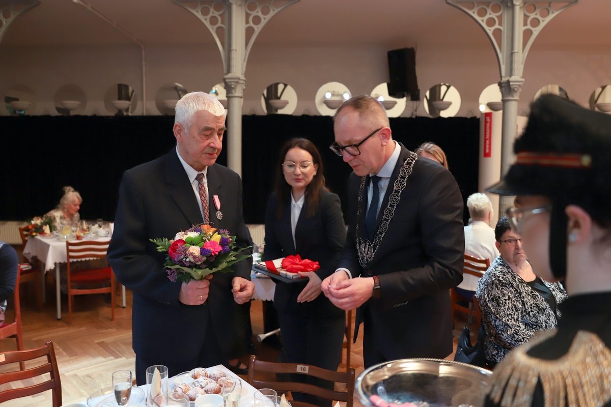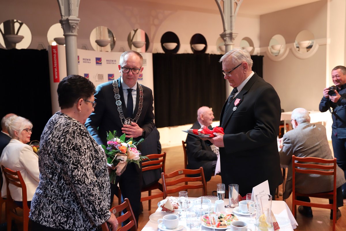 26 kwietnia br. w sali MOK zjawiło się 16 par. Najdłuższym pożyciem szczycić się mogą Państwo Henryk i Aniela Jędrzejczak, którzy są małżeństwem od 70 lat. Prezydent Łukasz Borowiak podarował im upominki książkowe.