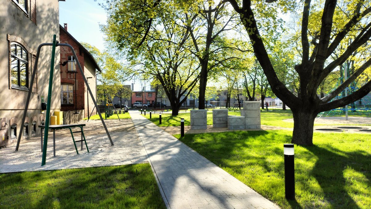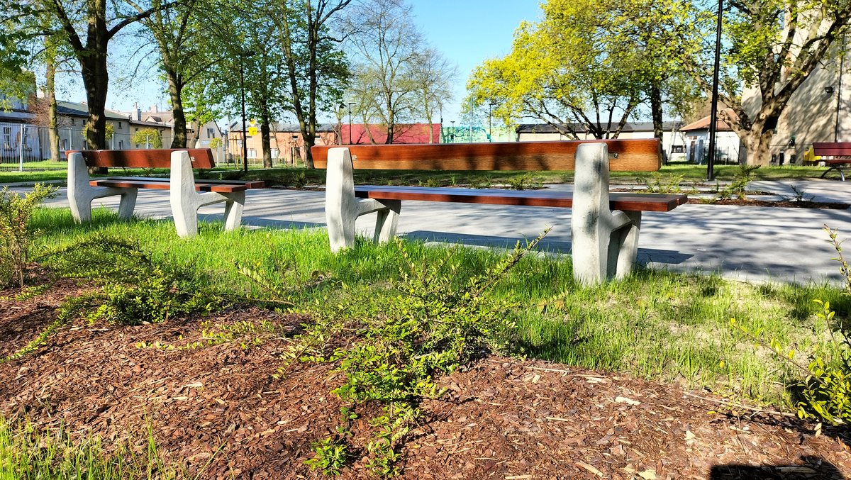 Całości dopełnia piękna zieleń. Oprócz już wcześniej rosnących tam drzew posadzono nowe, zasadzono także krzewy. Jesienią wysiano część trawy, teraz na wiosnę założono kolejne trawniki i tu ogromny apel do mieszkańców, aby uszanować świeżo obsiane miejsca, nie deptać ich, nie niszczyć, pozwolić trawie dobrze się ukorzenić i wzrosnąć.