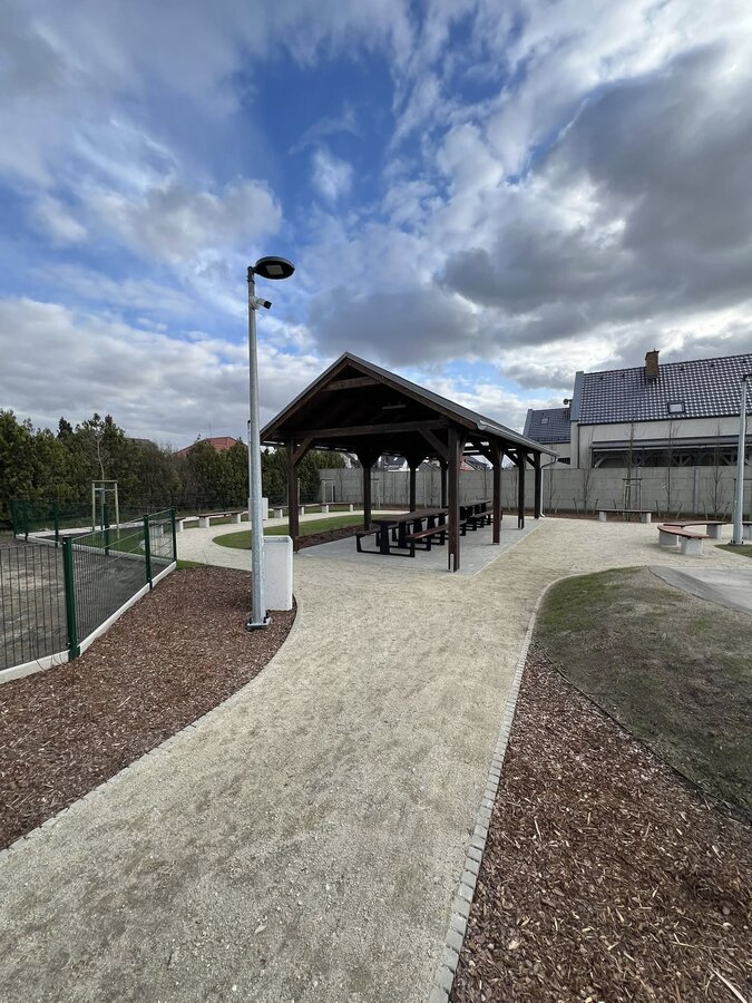 Inwestycja obejmowała nie tylko sam tor. Na terenie powstały również elementy małej architektury – ławeczki, nowe nasadzenia oraz wiata, która będzie służyć integracji mieszkańców i organizacji spotkań w przestrzeni rekreacyjnej.