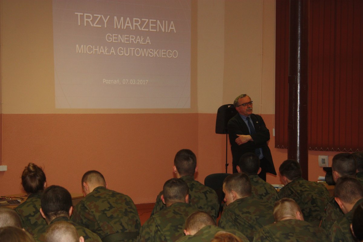 Spotkanie poprowadził wybitny leszczyński historyk oraz autor książki o generale Gutowskim, pan Zenon Jóźwiak. W czasie prelekcji opowiedziana była historia Generała, wspomnienia, osiągnięcia oraz jego „Trzy niezwykłe marzenia”.