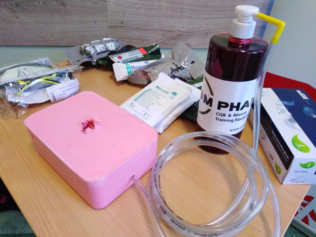 - trenażer pakowania ran - funkcja krwawienia, przyłącze do sztucznej krwi.