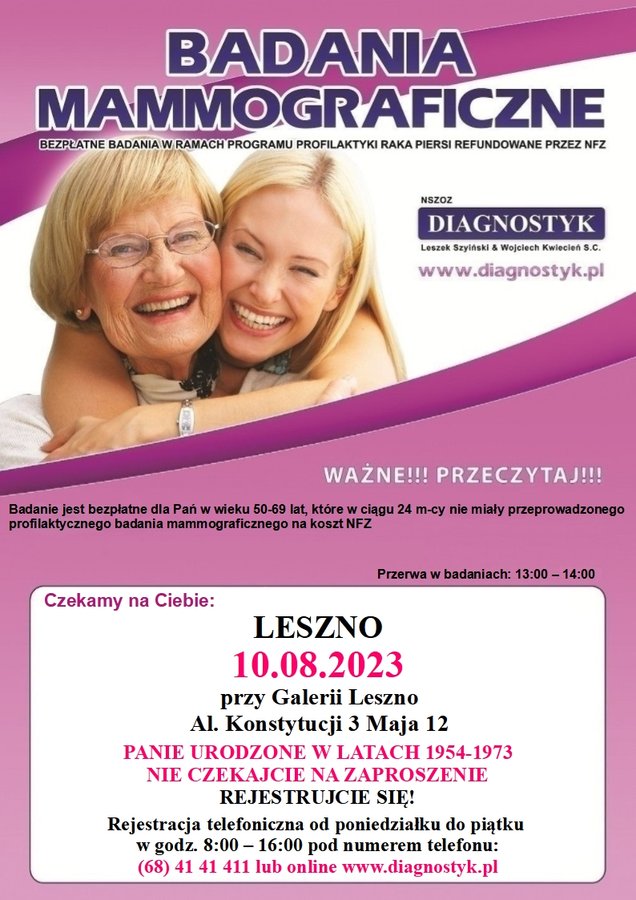 Zapisy na badania prowadzone są pod numerem telefonu: 68 41 41 411 (od 8.00 do 16.00: pn.-pt. ) lub online https://pacjent.diagnostyk.pl/