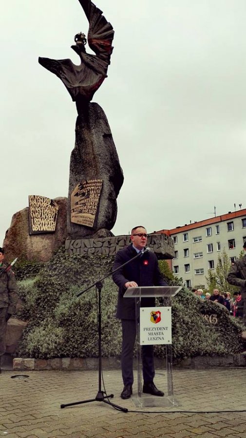 Pod pomnikiem odbyła się patriotyczna manifestacja. W krótkim przemówieniu, Prezydent Miasta Leszna, Łukasz Borowiak, podkreślił znaczenie uchwalenia Konstytucji 3 Maja w 1791 roku i przypomniał, że był to pierwszy tego typu dokument w Europie, a drugi, po konstytucji USA, w świecie. Prezydent Borowiak przypomniał także okoliczności, które nastąpiły już rok później, czyli zawiązanie konfederacji z Carycą Katarzyną i zniweczenie dorobku Konstytucji. Prezydent Miasta przypomniał, że Konstytucja 3 Maja stała się wielkim symbolem zwycięstwa i wolności, i że światli ludzie zawsze się do niej odwoływali.