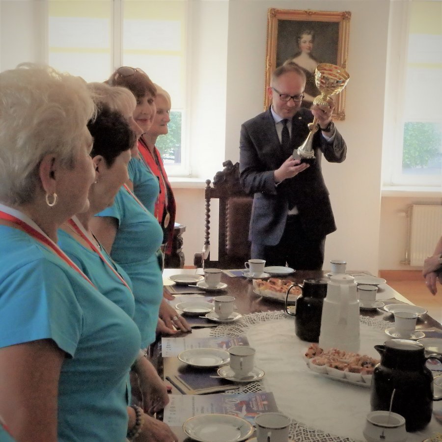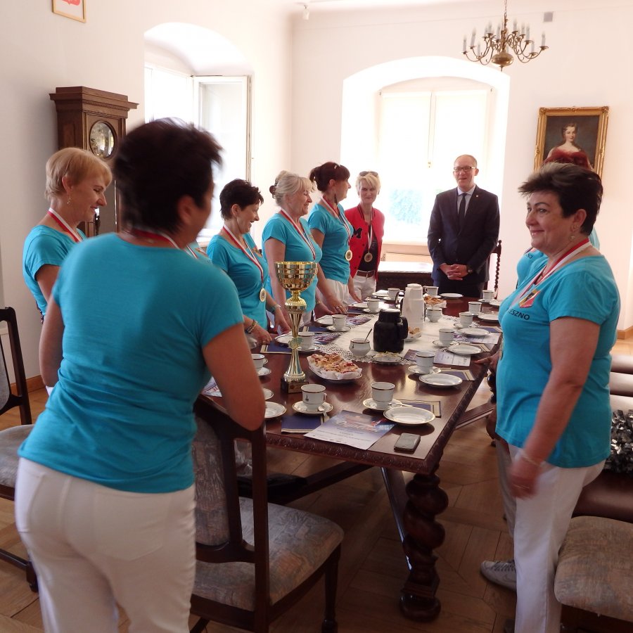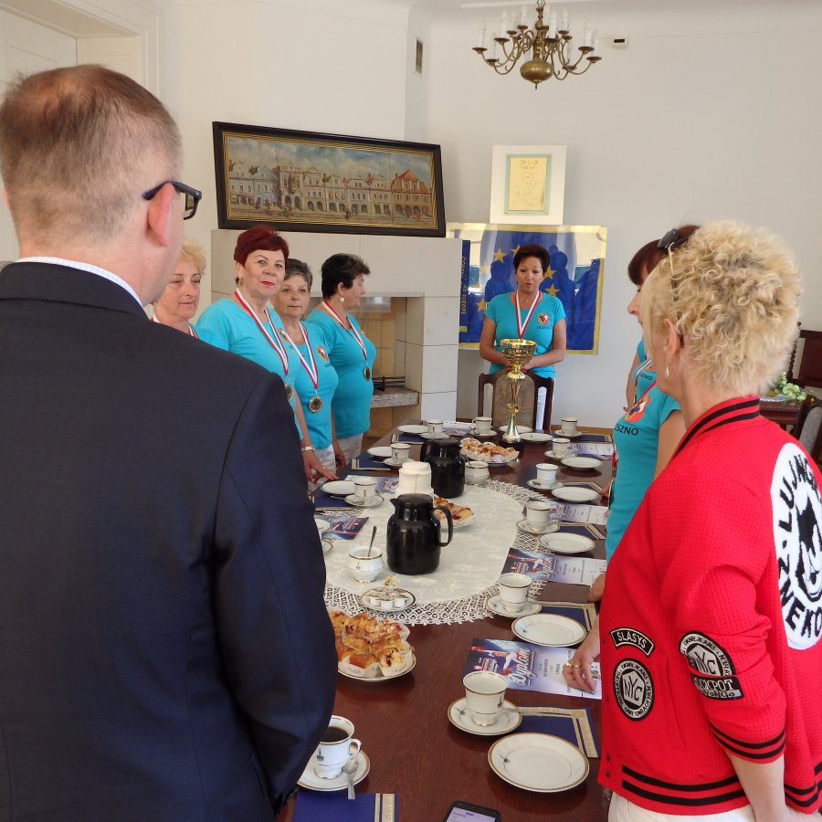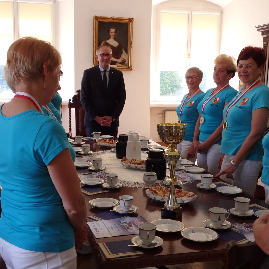Prezydent Łukasz Borowiak spotkał się dzisiaj w Ratuszu z Leszczyńskimi cheerleaderkami 50 +, aby pogratulować zdobycia I miejsca w Mistrzostwach Polski w Cheerleadingu Sportowym. Prezydent podziwiał zapał, kondycję i aktywność Pań z zespołu Happy Ladies.