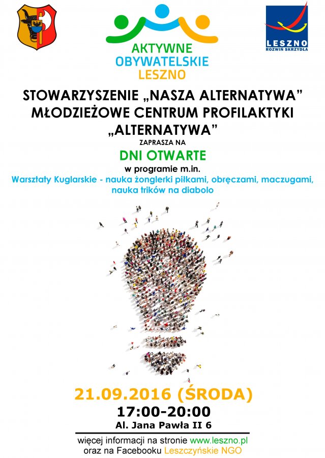 W siedzibie Stowarzyszenia „Nasza Alternatywa” – Młodzieżowe Centrum Profilaktyki „Alternatywa” będzie możliwość wzięcia udziału w warsztatach kuglarskich – żonglerka piłkami, obręczami czy maczugami uchyli przed Wami swoje tajemnice. Instruktorzy pokażą Wam również kilka trików na „diabolo”.