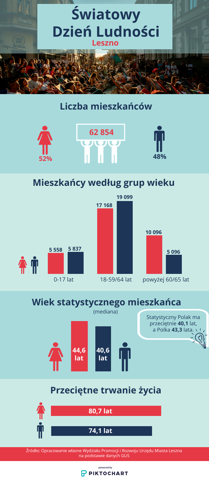 Przeciętna kobieta mieszkająca w Lesznie ma niecałe 45 lat i jest prawie półtora roku starsza od przeciętnej Polki. Jest też starsza od statystycznego mieszkającego w naszym mieście mężczyzny, który ma ponad 40 lat i jest pół roku starszy od przeciętnego Polaka.